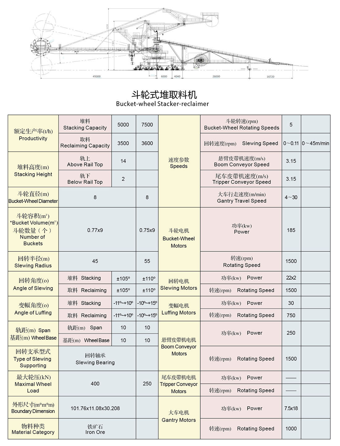 斗輪堆取料機(jī),是大宗散狀物料連續(xù)裝卸的高效設(shè)備,廣泛應(yīng)用于港口、碼頭、冶金、水泥、鋼鐵、焦化、儲(chǔ)煤廠、發(fā)電廠等散料(礦石、煤、焦炭、砂石)存儲(chǔ)料場(chǎng)的堆取作業(yè)
