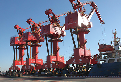 用于港口碼頭前沿裝卸一般散貨和件雜貨的通用港口裝卸起重機(jī)。依靠完善的工作機(jī)構(gòu)協(xié)調(diào)工作,以較高的效率完成船-岸、船-車、船-船之間的多種裝卸作業(yè)