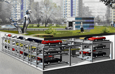 PPY平面移動類機械式停車設備是在同一水平層上用搬運器平面移動汽車或載車板,多層之間是靠升降機來實現(xiàn)不同層之間的轉換,實現(xiàn)汽車的存取。