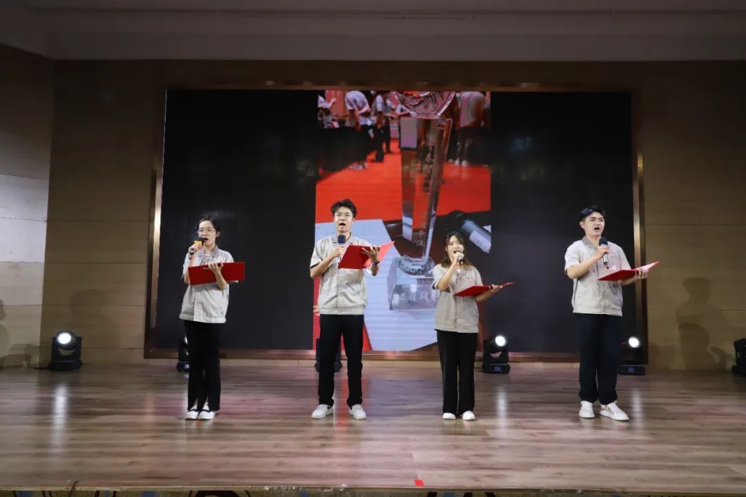全場活動共分為矢志砥初心、激昂正青春、建功新時代三個篇章。晚會在VLOG《一起向未來》短視頻中拉開了帷幕,傳統(tǒng)藝術(shù)三句半《太重新人說太重》展現(xiàn)出新入職大學(xué)生以堅(jiān)定的信念、過硬的本領(lǐng)、擔(dān)當(dāng)?shù)挠職庾V寫太重贊歌的精氣神。“讓我們緊跟‘五年三步走’的戰(zhàn)略方向,以青春之名,放飛理想,為輝煌的太重獻(xiàn)熱爭光!”原創(chuàng)詩朗誦《以太重之名為太重爭光》表述著新入職大學(xué)生的激情與夢想,激勵著太重新青年用奮斗和奉獻(xiàn)圓夢,共同繪就太重美好的明天。