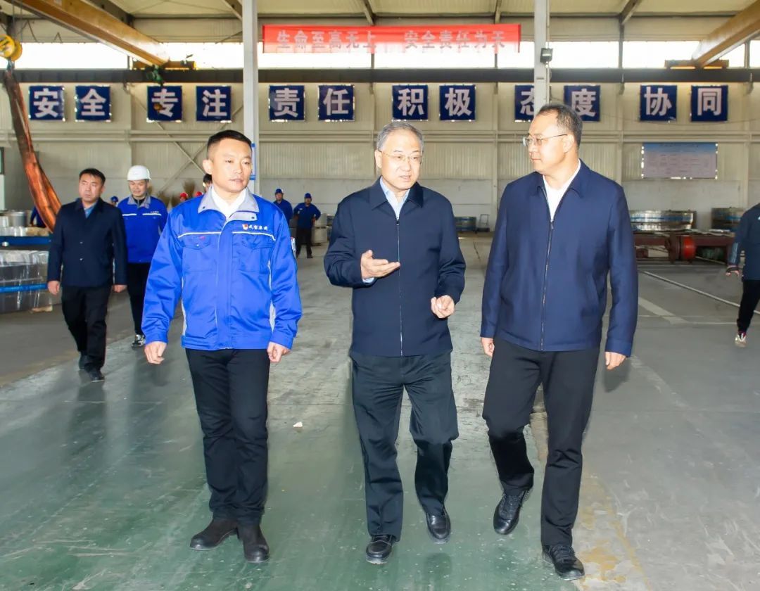 韓珍堂表示,黨的二十大報(bào)告提出的“建設(shè)現(xiàn)代化產(chǎn)業(yè)體系”“加快發(fā)展方式綠色轉(zhuǎn)型”等重大戰(zhàn)略,為實(shí)體工業(yè)企業(yè)發(fā)展指明了方向、提供了路徑。太重作為“國(guó)民經(jīng)濟(jì)的開(kāi)路先鋒”,我省高端裝備制造和風(fēng)電裝備制造兩條產(chǎn)業(yè)鏈的“鏈主”企業(yè),責(zé)任重大、使命光榮,要認(rèn)真學(xué)習(xí)貫徹黨的二十大精神,深入落實(shí)省委同步推進(jìn)產(chǎn)業(yè)轉(zhuǎn)型和數(shù)字轉(zhuǎn)型“兩個(gè)轉(zhuǎn)型”的部署,發(fā)揮科技創(chuàng)新支撐引領(lǐng)作用,加快公司智能化、數(shù)字化轉(zhuǎn)型步伐,著力突破“卡脖子”技術(shù),賦能企業(yè)高質(zhì)量高速度發(fā)展,以制造興實(shí)體、以實(shí)體強(qiáng)產(chǎn)業(yè)、以產(chǎn)業(yè)促發(fā)展,切實(shí)把制造業(yè)做實(shí)做優(yōu)做強(qiáng)。定襄縣作為“中國(guó)鍛造之鄉(xiāng)”、亞洲最大的法蘭生產(chǎn)基地、世界最大的法蘭出口基地,在風(fēng)電裝備制造產(chǎn)業(yè)鏈鍛件產(chǎn)業(yè)中發(fā)揮著巨大的作用。太重將積極發(fā)揮龍頭帶動(dòng)作用,在國(guó)家雙碳目標(biāo)的引領(lǐng)下,以前瞻性、可靠性、先進(jìn)性為理念,精準(zhǔn)延鏈補(bǔ)鏈強(qiáng)鏈,以開(kāi)放姿態(tài)搭建平臺(tái)引資引智,瞄準(zhǔn)專利+服務(wù)+技術(shù),進(jìn)一步與“鏈核”“鏈上”企業(yè)開(kāi)展戰(zhàn)略、技術(shù)、資本合作,為山西全方位推動(dòng)高質(zhì)量發(fā)展作出更大貢獻(xiàn)。