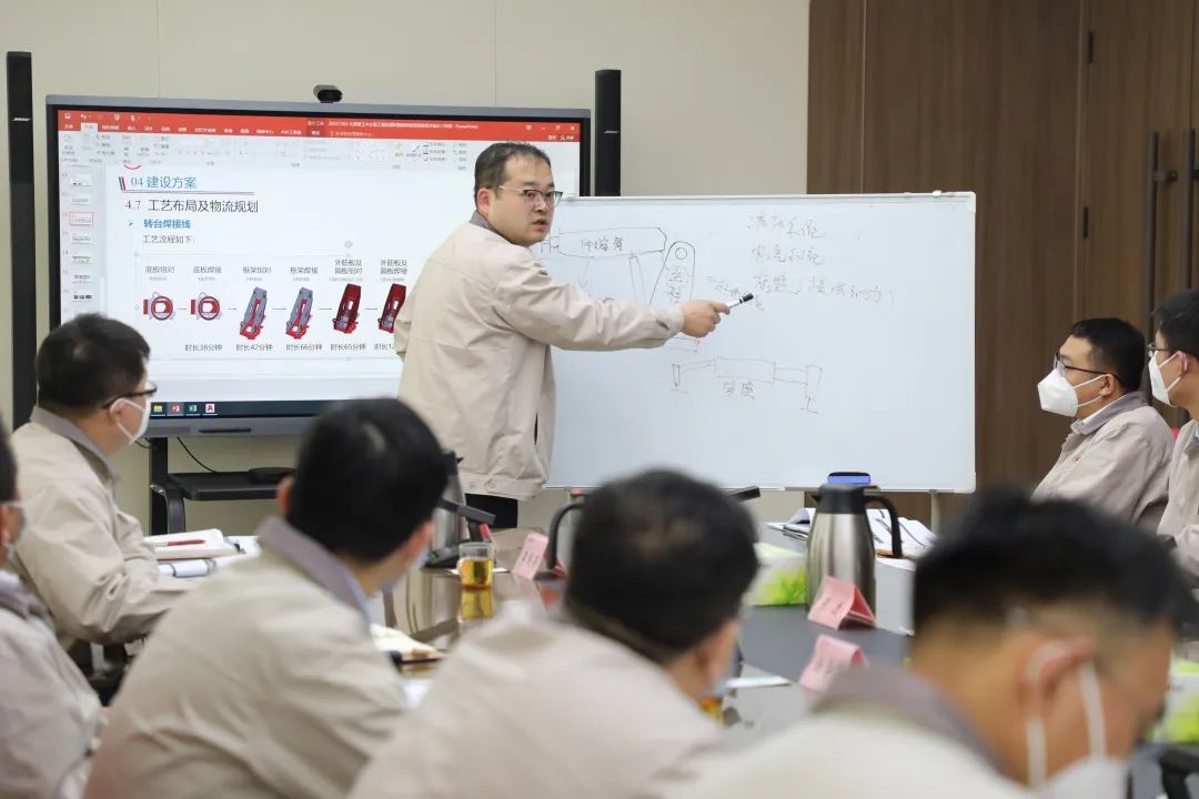 現(xiàn)場調(diào)研結(jié)束后,韓珍堂主持召開工程機械項目建設(shè)推進會。組織參會人員現(xiàn)場畫圖、現(xiàn)場分析、精準(zhǔn)拆解、明確分工、制定工期,把會議開在實處,發(fā)現(xiàn)問題當(dāng)下推動、當(dāng)下解決。