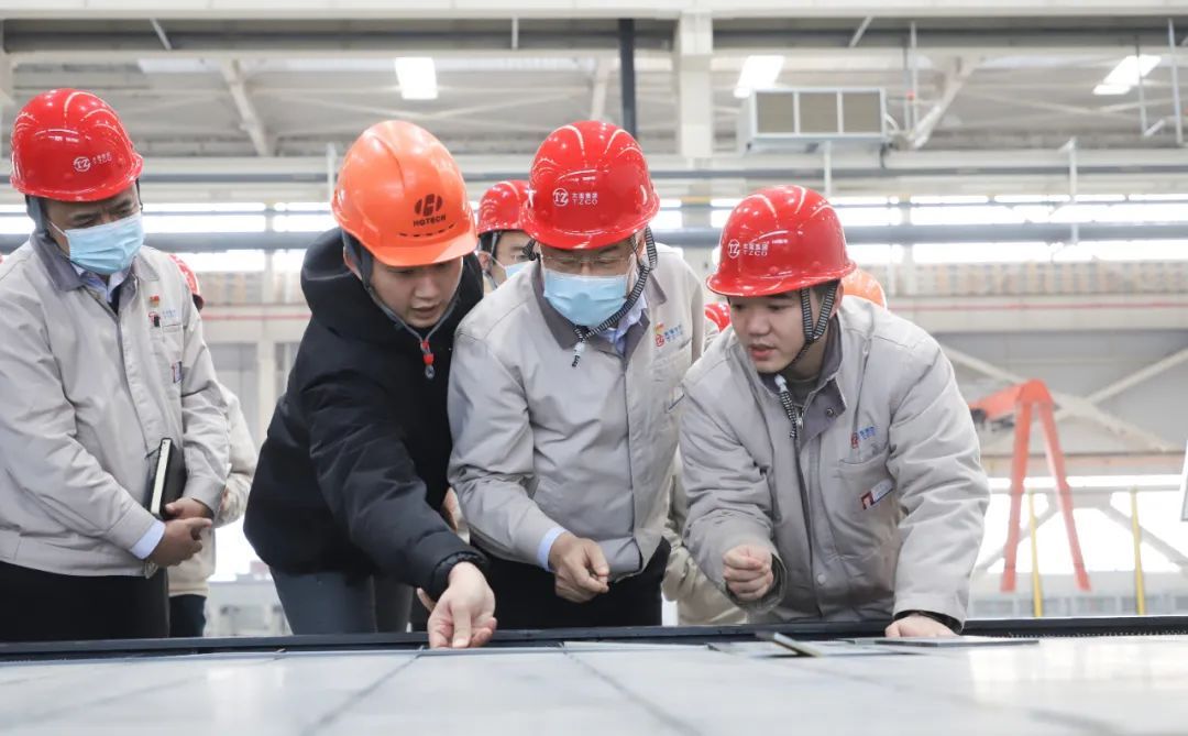 在激光切割機、拋丸機、矯平機等關(guān)鍵設(shè)備前,韓珍堂駐足察看、仔細(xì)詢問,并圍繞項目進(jìn)度、工藝流程等提出具體要求。他指出,要切實做好設(shè)備單機驗收、功能考核、達(dá)產(chǎn)驗證方案評審等工作,不斷提高職工能力本領(lǐng),確保設(shè)備快速掌握、順利接手,同時,統(tǒng)籌協(xié)調(diào)各方資源,充足備品備料,以萬全準(zhǔn)備確保萬無一失,全力推動達(dá)產(chǎn)達(dá)效。要加快完善產(chǎn)線數(shù)智化進(jìn)程,持續(xù)推動大數(shù)據(jù)、人工智能、機器人、視覺識別等先進(jìn)技術(shù)的深度融合,在自動化、信息化、智能化方面下真功夫、下實功夫、下苦功夫,團結(jié)協(xié)作打造“燈塔工廠、智能工廠、黑燈工廠”典范。