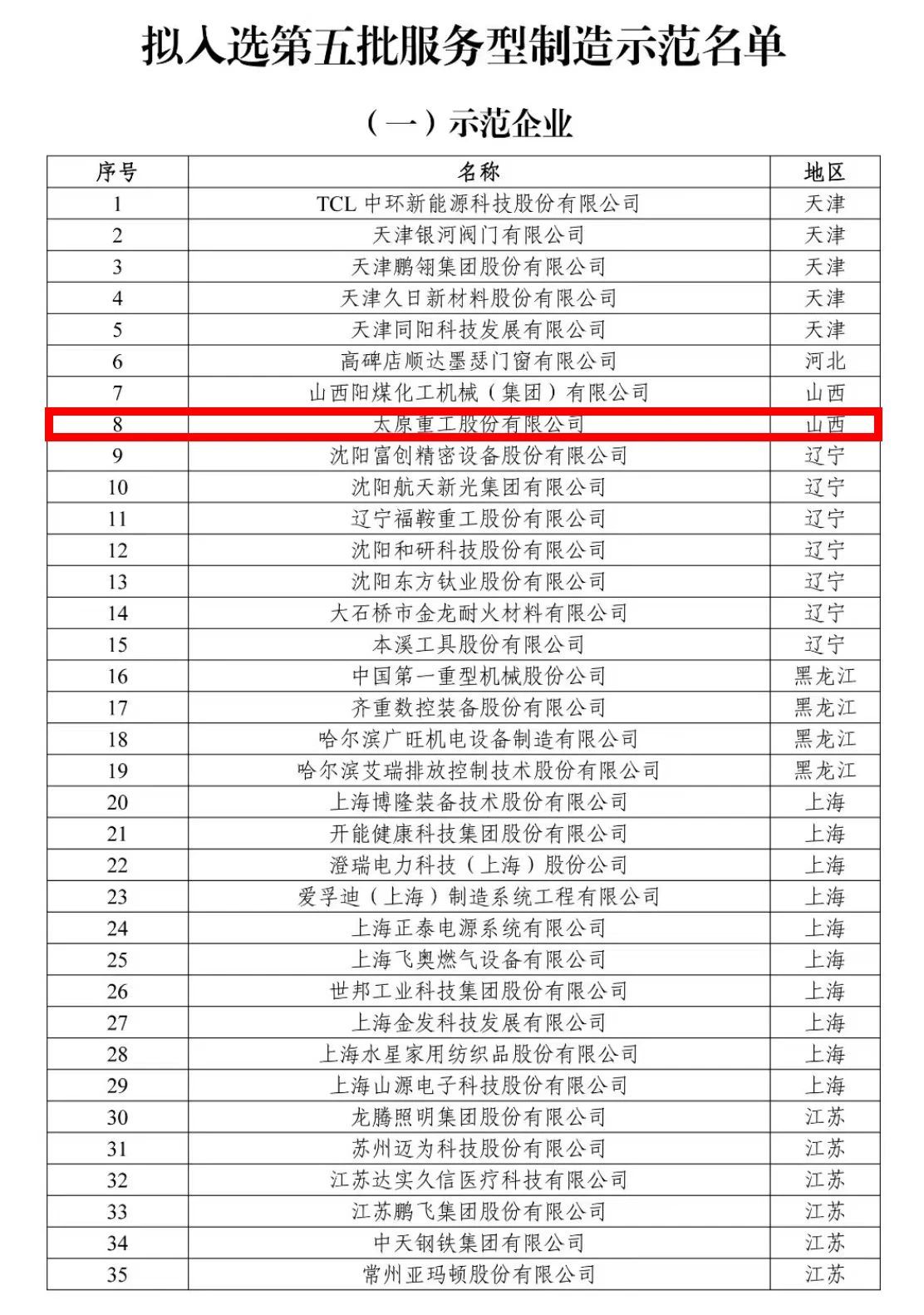 近日,工信部公示了第五批服務(wù)型制造示范名單,太原重工股份有限公司榮耀上榜!成為該批名單中山西僅有的兩家企業(yè)之一。