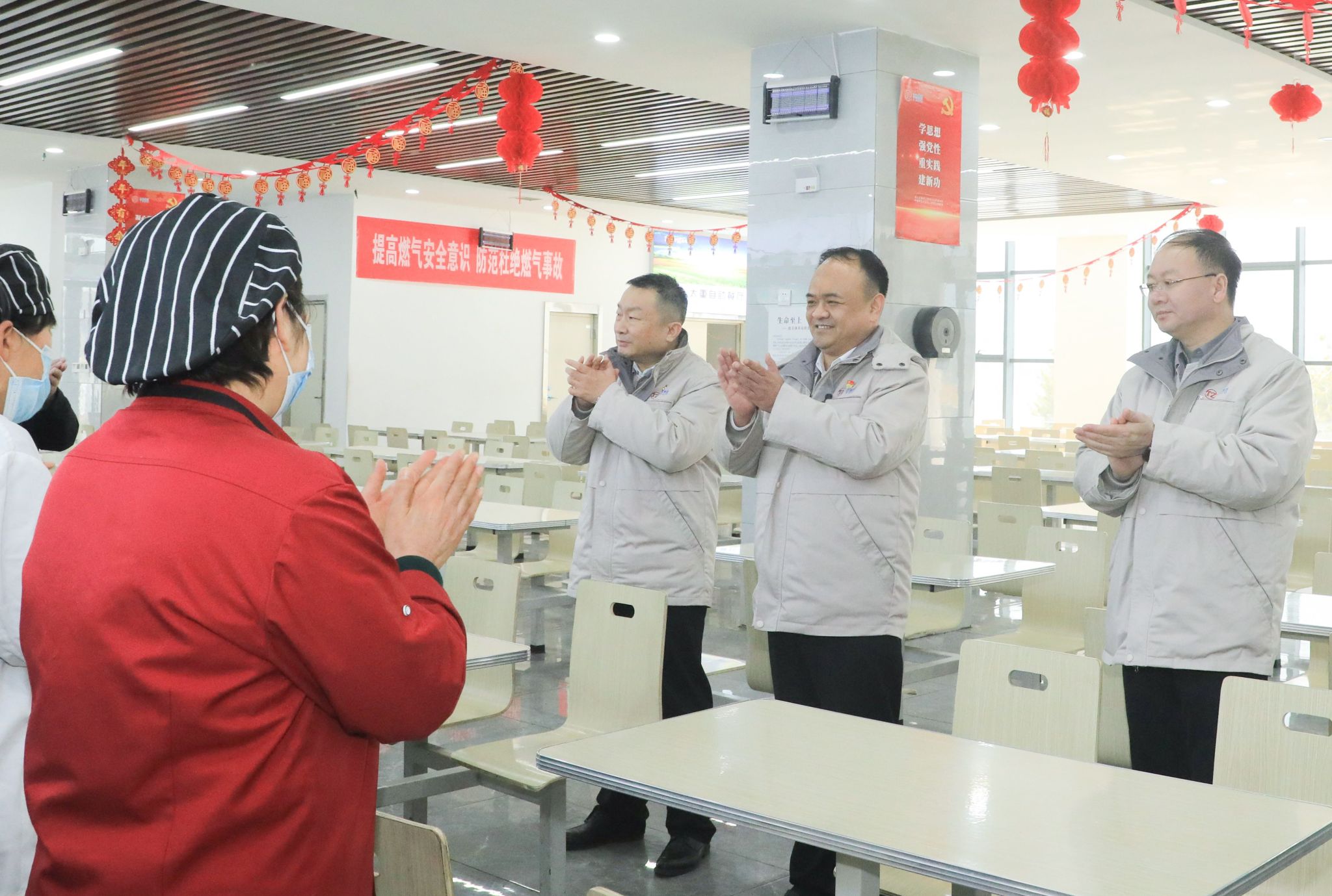 制造部總調中心是公司生產調度管理的前沿陣地。陶家晉、史智杰與王省林在總調中心察看生產集控管理平臺后表示,要嚴格落實值班值守制度,及時準確發(fā)布預警信息和風險提示,做好應急響應,全力保障節(jié)日期間安全穩(wěn)定運行。隨后領導一行走進東、西食堂,詳細了解了春節(jié)期間職工餐飲的安排情況。他們表示,職工和企業(yè)是利益共同體、事業(yè)共同體、命運共同體,要為職工提供形式多樣、口感豐富的飯菜,把每一個窗口都打造成暖心陣地,保障職工在春節(jié)期間吃上熱氣騰騰的飯菜,讓守崗職工過好年!