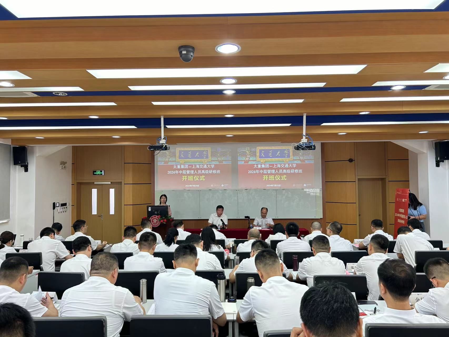 7月25日,太重集團(tuán)第一期中層及助理人員培訓(xùn)班在滬開班。來自各單位的50名干部走進(jìn)上海交通大學(xué),開啟為期6天的封閉式管理培訓(xùn)。集團(tuán)公司黨委專職副書記、副董事長張新偉參加開班儀式,并全程參加此次培訓(xùn)。