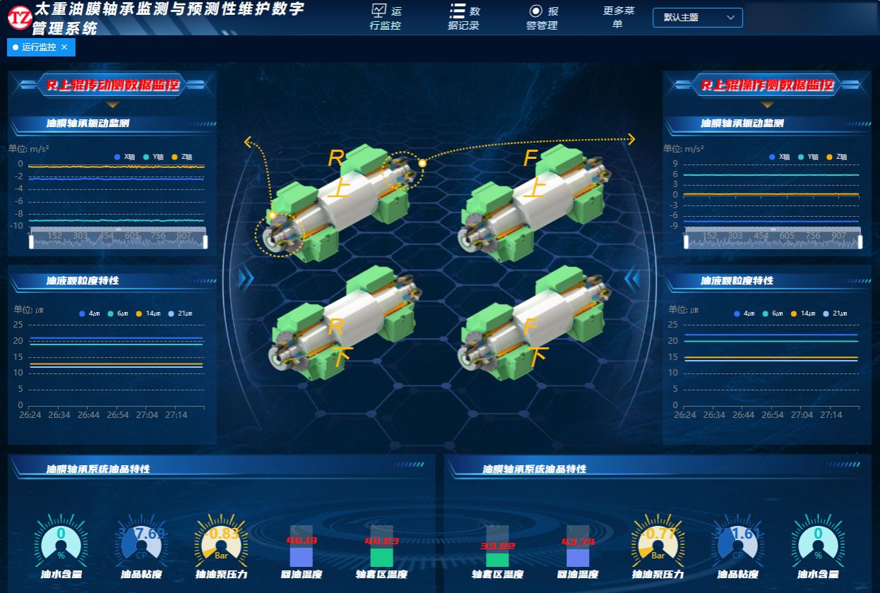 油膜軸承被稱為軋機的“心臟”,使用過程中的運行維護一直是行業(yè)內(nèi)的一大難題。太重研發(fā)的智能化監(jiān)測平臺相當于一位“智能醫(yī)生”,能夠隨時給軋機拍攝“心電圖”,通過對油膜軸承溫度、振動、油液狀態(tài)等關(guān)鍵指標的在線監(jiān)測,保證油膜軸承安全穩(wěn)定運行。