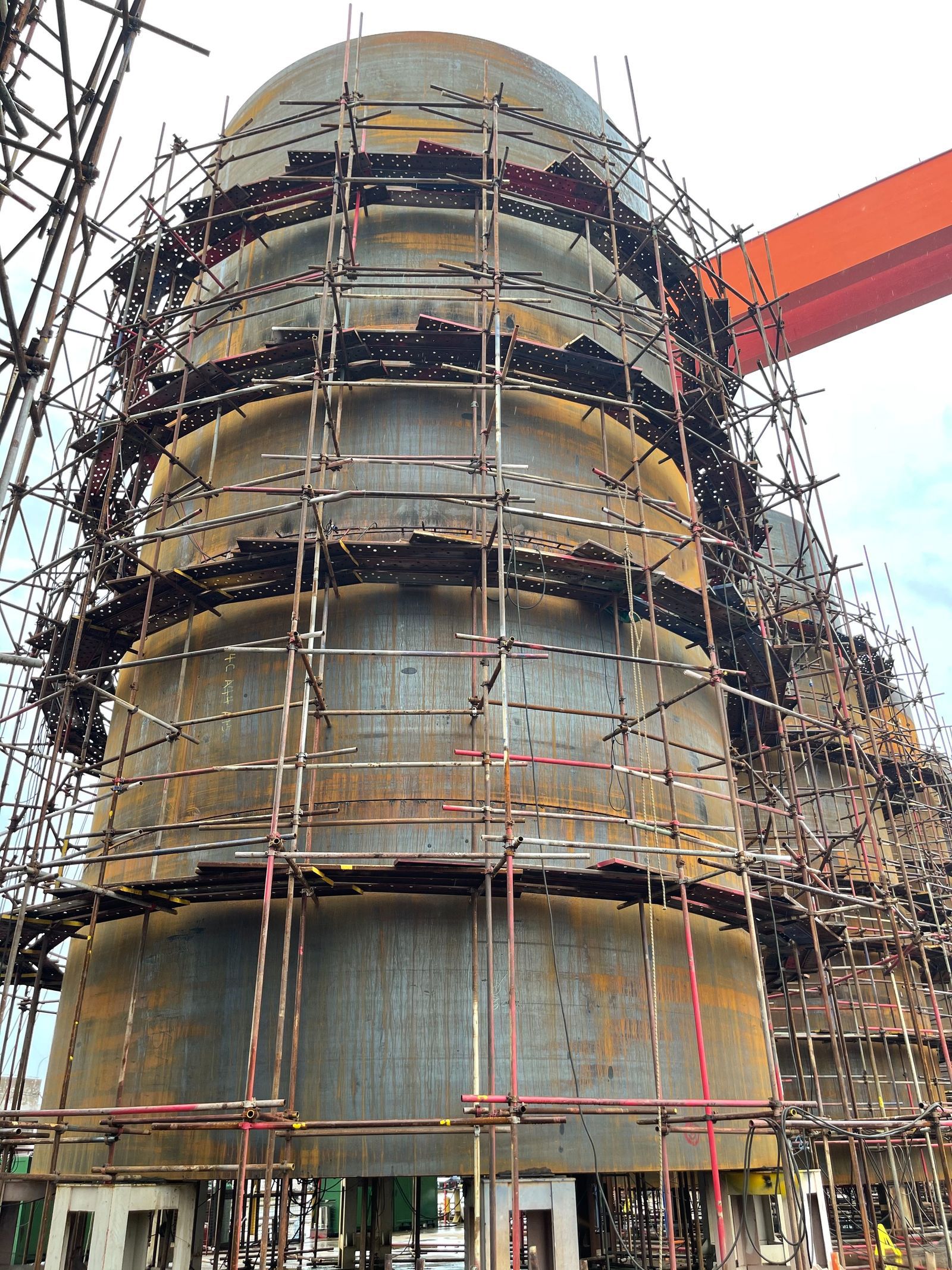 塔器作為用于蒸餾、提純、吸收、精餾等化工操作的工藝設(shè)備,工藝制作復(fù)雜,是業(yè)內(nèi)考驗(yàn)裝備制造企業(yè)實(shí)力的標(biāo)桿。此次濱海公司承攬的超限塔器設(shè)備,更是根據(jù)用戶需求全新定制,對具體部件的生產(chǎn)制造提出了更高要求。而“圈圓”,正是其中最具挑戰(zhàn)性的一個環(huán)節(jié)。
