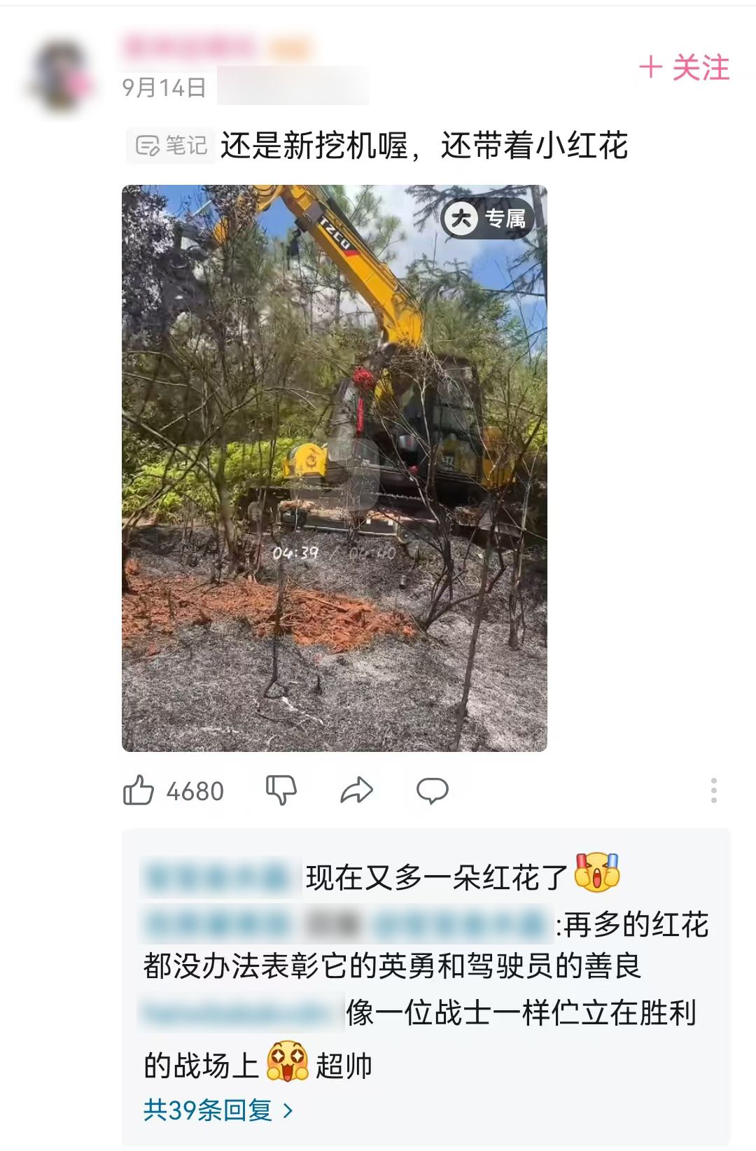 近日,某叢林施工現(xiàn)場,一場山火突如其來,危急時刻,一位博主毫不猶豫地跳上了挖機,沖進了火海,搶先挖出了一條隔離帶,最后在當(dāng)?shù)鼐用窈拖啦块T的配合下,成功撲滅山火。在此期間,博主用手機錄下了救災(zāi)的全過程,并上傳至視頻網(wǎng)站,無數(shù)網(wǎng)友對博主的英勇行為豎起了大拇指!為博主點贊,也為挖機點贊!眼尖的網(wǎng)友們早就發(fā)現(xiàn)這是太重挖掘機,機身上鮮明的TZCO標(biāo)志和小紅花相得益彰,“超帥”!