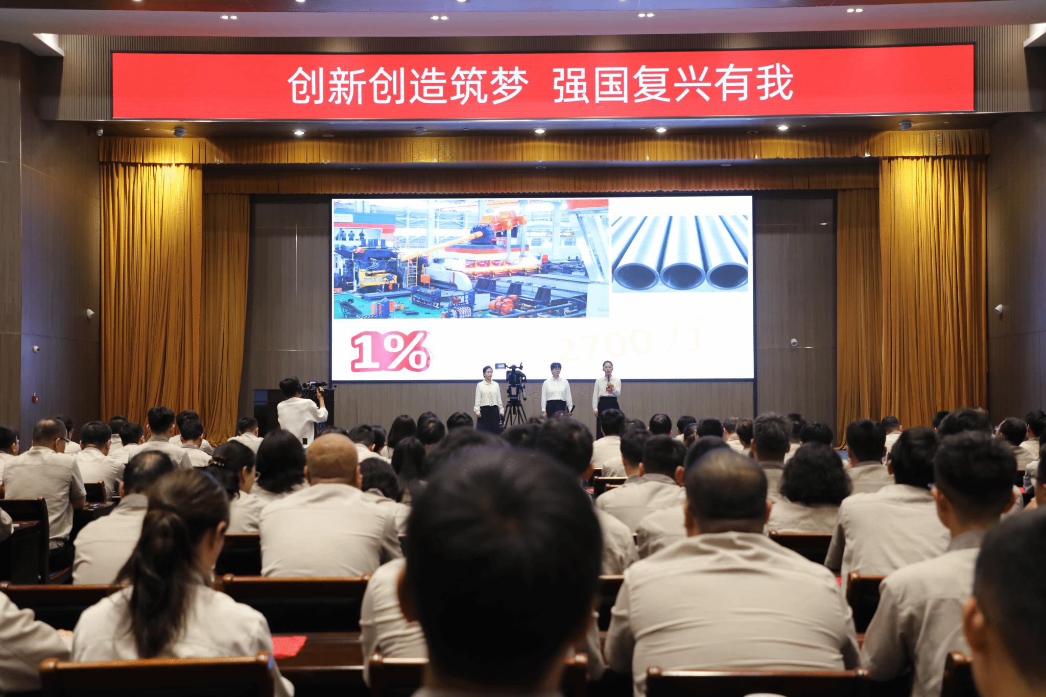 我是來自技術(shù)中心的裴丁璞。黨的二十屆三中全會把科技創(chuàng)新放置于前所未有的突出位置,中國式現(xiàn)代化關(guān)鍵在科技現(xiàn)代化。在今年全國科技大會上,習(xí)近平總書記勉勵科技工作者,要以“十年磨一劍”的堅定決心和頑強意志,只爭朝夕、埋頭苦干,一步一個腳印把科技強國這一戰(zhàn)略目標變?yōu)楝F(xiàn)實。憶往昔,錢學(xué)森長空鑄劍,用蒼茫大漠點綴了蘑菇云的硝煙,護佑祖國千秋萬代;看今朝,袁隆平稻田筑夢,用一粒種子維護了全球糧食安全,燭照后人前行之路!在我們技術(shù)中心,有這樣一支最強女團,她們整日與“鋼鐵猛獸”相伴,在軋鋼技術(shù)的最前沿不斷探索、矢志創(chuàng)新,用實際行動詮釋了“科技強國”的深刻內(nèi)涵,被大家稱為“三劍客”,她們就是郝志紅、石媚杰、張力。今天,她們想以工程師的視角講講自己眼中的科技創(chuàng)新。