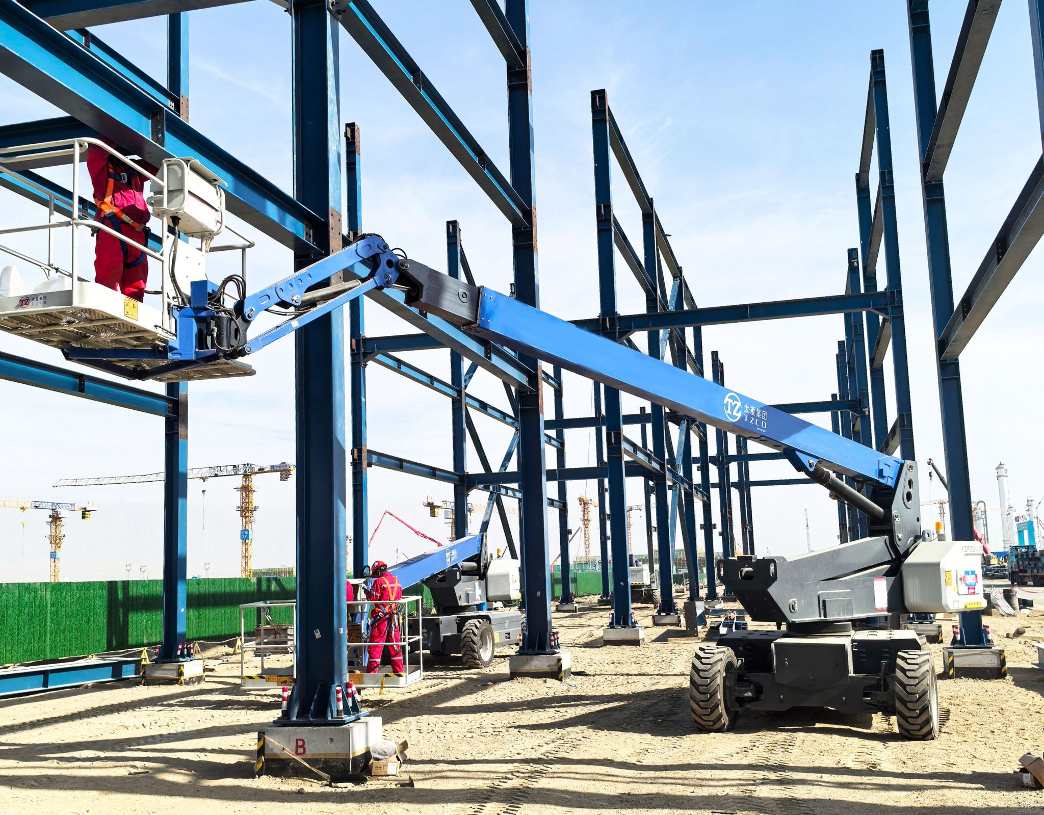 乙烯的生產(chǎn)能力和技術(shù)水平是衡量一個(gè)國(guó)家化工實(shí)力的標(biāo)志之一,該乙烯項(xiàng)目的實(shí)施,對(duì)于提升我國(guó)石化產(chǎn)業(yè)競(jìng)爭(zhēng)力,促進(jìn)地方經(jīng)濟(jì)發(fā)展,保障國(guó)家能源安全具有極其重要的意義。項(xiàng)目重大,建設(shè)工具當(dāng)然要優(yōu)中選優(yōu)。在施工現(xiàn)場(chǎng)精彩亮相的TZPZ20JE直臂式高空作業(yè)平臺(tái),是太重高機(jī)家族的明星產(chǎn)品之一,它到底有哪些不同凡響的優(yōu)勢(shì)?小編今天來(lái)給大家做個(gè)介紹~
