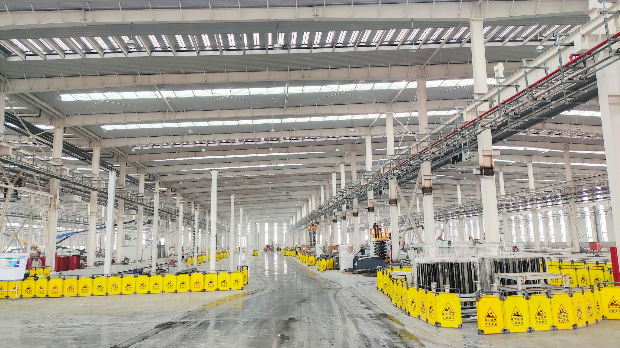 高端產(chǎn)線亮點(diǎn)紛呈,太重裝備在其中忙得“不亦樂(lè)乎”。聯(lián)合廠房?jī)?nèi),太重研制的高空作業(yè)平臺(tái)隨處可見(jiàn),隨車起重機(jī)更是以其靈活的特性在廠房完善中發(fā)揮著關(guān)鍵作用。一位現(xiàn)場(chǎng)施工人員感慨道:“太重直臂車、剪叉車成為我們的得力幫手,用自己的一流產(chǎn)品,造自己的一流園區(qū),相信園區(qū)建成之后,太重工程起重機(jī)產(chǎn)品的性能只會(huì)更好!”