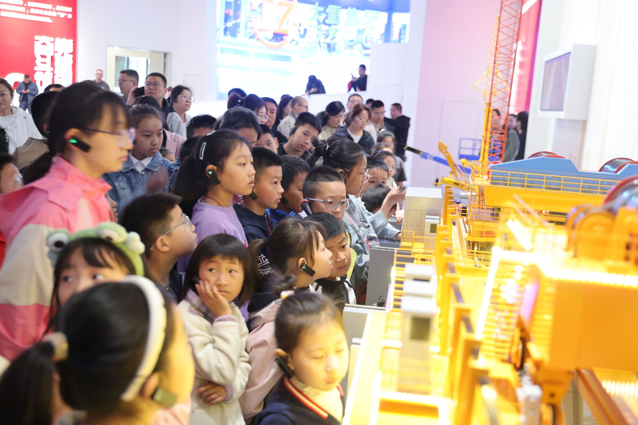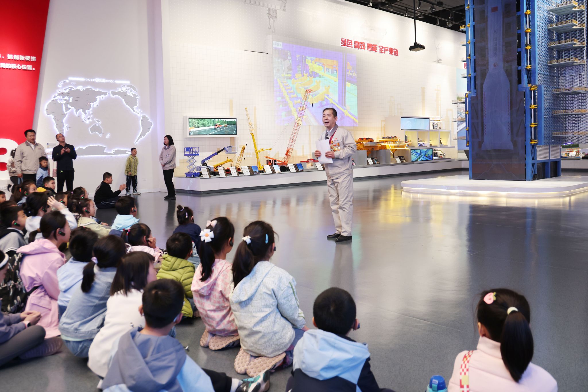 活動伊始,孩子們跟隨講解員走進公司展覽中心,從珍貴的歷史手稿到航天發(fā)射塔架模型,再到各種高端化、智能化裝備,琳瑯滿目的裝備讓孩子們應(yīng)接不暇、直呼過癮。當(dāng)智能無人叉車駛出,將其運載的模型緩緩呈現(xiàn)到大家眼前,孩子們無不驚嘆:爸爸媽媽的公司這么牛!