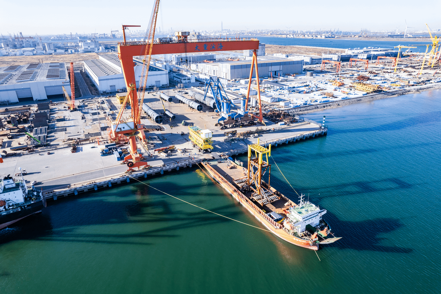 龍門(mén)吊機(jī)轟鳴運(yùn)轉(zhuǎn)、井然有序地進(jìn)行裝卸作業(yè);碼頭巨輪頻靠、車(chē)船如織,汽笛轟鳴間,滿載貨物的貨輪駛向遠(yuǎn)方……走進(jìn)春日的太重濱海碼頭,處處一派繁忙景象。