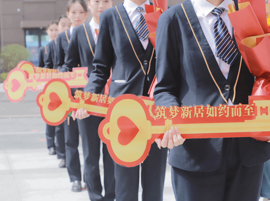 儀式上,8門金色禮炮齊聲轟鳴,公司領導將金燦燦的新房鑰匙交到職工代表手中。手握通往新家園、新生活、新美好的鑰匙,此時此刻,萬千期待終不負美好相見,理想生活的藍圖自此開啟,職工們喜上眉梢、笑容滿面。