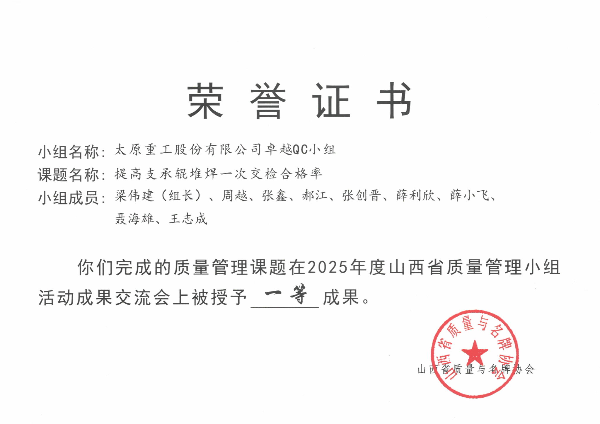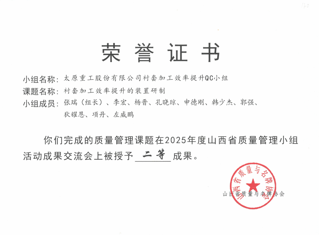 實“質(zhì)”名歸,再獲殊榮!近日,太重5項QC成果分別在“2025年中國質(zhì)量創(chuàng)新與質(zhì)量改進成果發(fā)表交流系列活動”和“2025年度山西省質(zhì)量管理小組活動成果交流會”中脫穎而出,獲得多項榮譽。