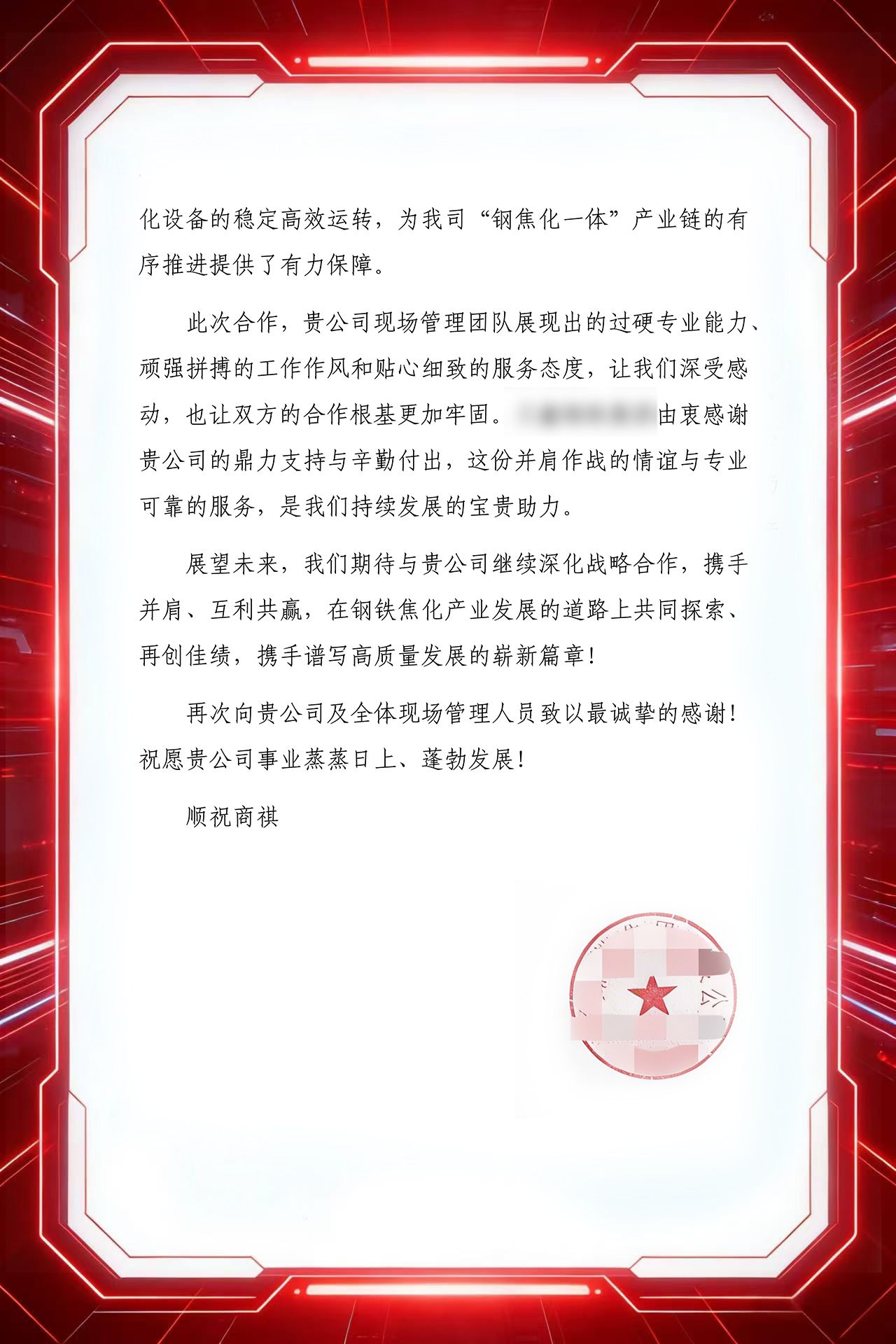 這份感動(dòng),源于140天的并肩作戰(zhàn)。去年,焦化公司為用戶提供的6.25米搗固焦?fàn)t設(shè)備,從安裝到項(xiàng)目投產(chǎn),太重團(tuán)隊(duì)始終堅(jiān)守一線,與時(shí)間賽跑、與困難較量,把用戶的工程當(dāng)作自己的戰(zhàn)場。面對緊張的工期和復(fù)雜的環(huán)境,他們科學(xué)統(tǒng)籌、精益求精,較標(biāo)準(zhǔn)周期提前40天完成建設(shè)任務(wù),為用戶“鋼焦化一體”產(chǎn)業(yè)鏈布局筑牢了根基。項(xiàng)目投產(chǎn)后,團(tuán)隊(duì)服務(wù)不減、標(biāo)準(zhǔn)不降,從日常巡檢到突發(fā)處置,以全天候的守護(hù)保障設(shè)備穩(wěn)定高效運(yùn)行。