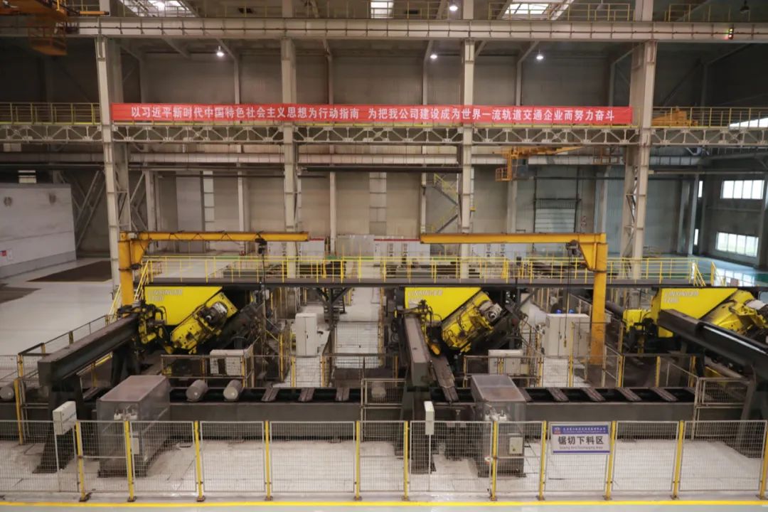 這是一條年產(chǎn)車輪40萬(wàn)片的生產(chǎn)線,也是目前國(guó)內(nèi)自動(dòng)化程度最高的車輪生產(chǎn)線。從這里生產(chǎn)出來(lái)的車輪,可用于高鐵、地鐵、大型客車等。