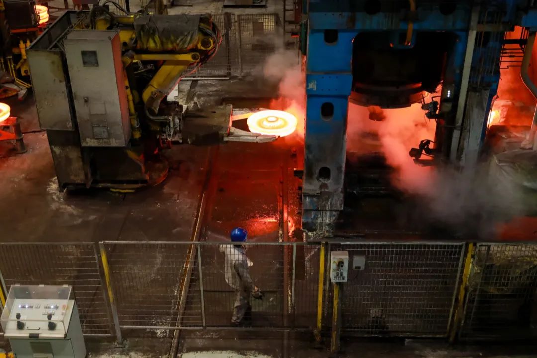 然后對(duì)切割好的鋼錠進(jìn)行加熱。加熱好之后,便可以進(jìn)行鍛造軋制了,通俗地說(shuō),就是“塑型”。
