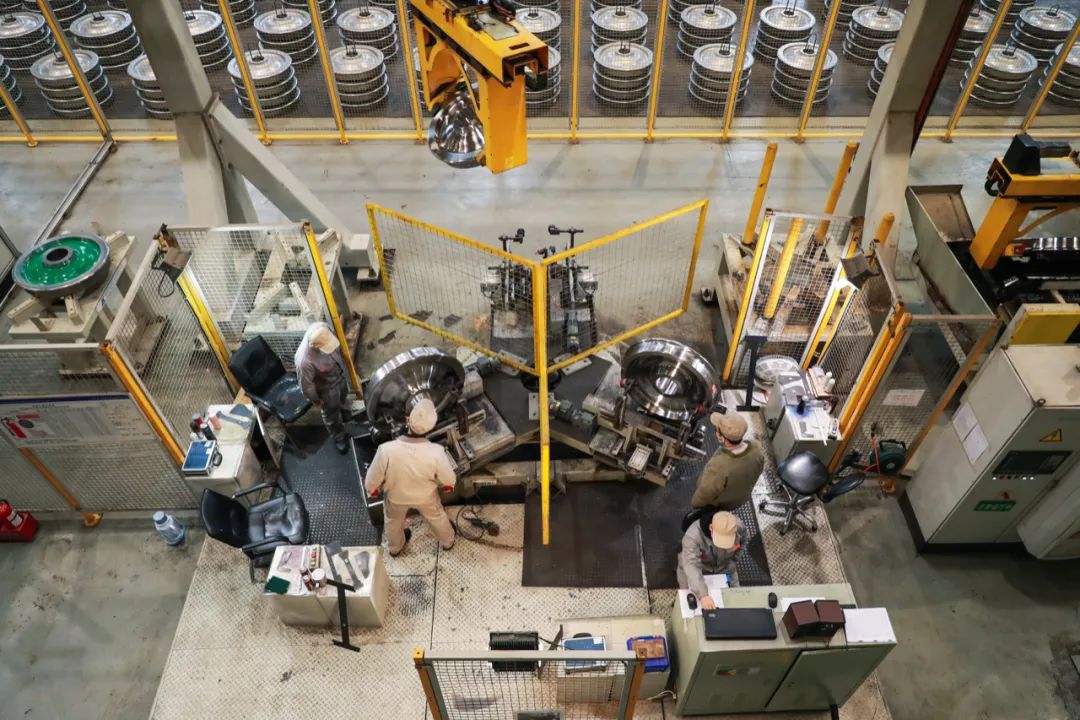 在這里,已經(jīng)可以看到車輪的雛形了。“塑型”之后,還要進(jìn)行熱處理。如果說(shuō)“塑型”是外部打造,熱處理便是內(nèi)部修煉。內(nèi)外兼修,車輪的性能才更加穩(wěn)定。再經(jīng)過(guò)一系列的自動(dòng)化精加工,車輪便生產(chǎn)出來(lái)了。