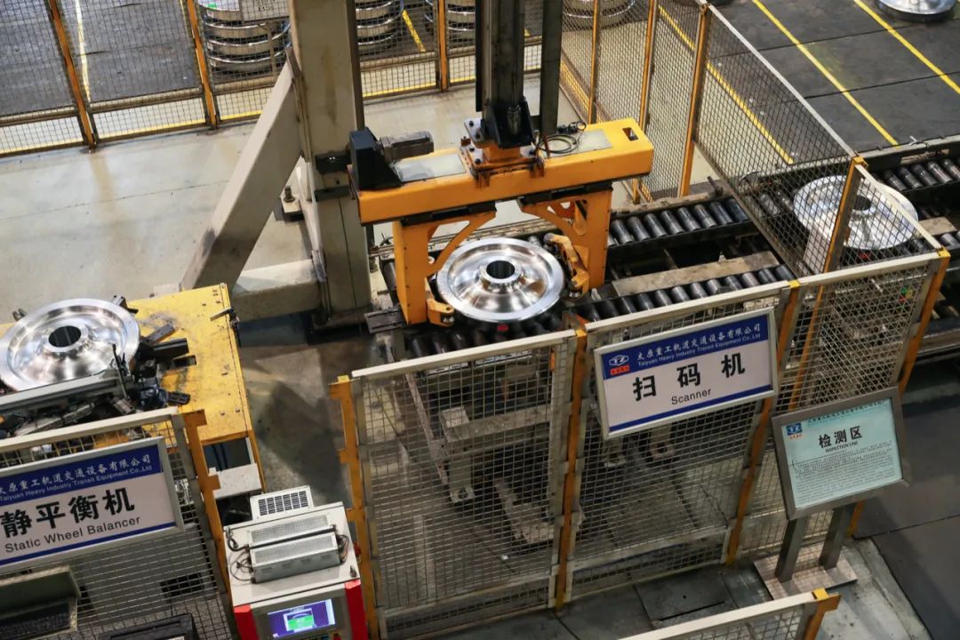 3月26日,位于山西轉(zhuǎn)型綜改示范區(qū)的太原重工軌道交通設(shè)備有限公司車輪廠生產(chǎn)車間內(nèi),機(jī)器轟鳴,一條全自動(dòng)的車輪生產(chǎn)線正開(kāi)足馬力,有序生產(chǎn)。
