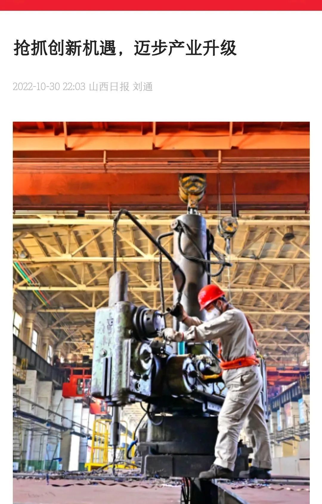 10月30日,山西日報以《搶抓創(chuàng)新機(jī)遇,邁步產(chǎn)業(yè)升級》為題,對太重集團(tuán)加大工藝技術(shù)創(chuàng)新取得的新突破進(jìn)行報道。全面深化改革以來,太重集團(tuán)堅(jiān)持改革創(chuàng)新,聚焦智能設(shè)計、智能制造、智能產(chǎn)品、智能服務(wù),全力推動“制造”向“智造”轉(zhuǎn)型升級,持續(xù)提升制造業(yè)的技術(shù)含量,賦能公司高質(zhì)量高速度發(fā)展。
