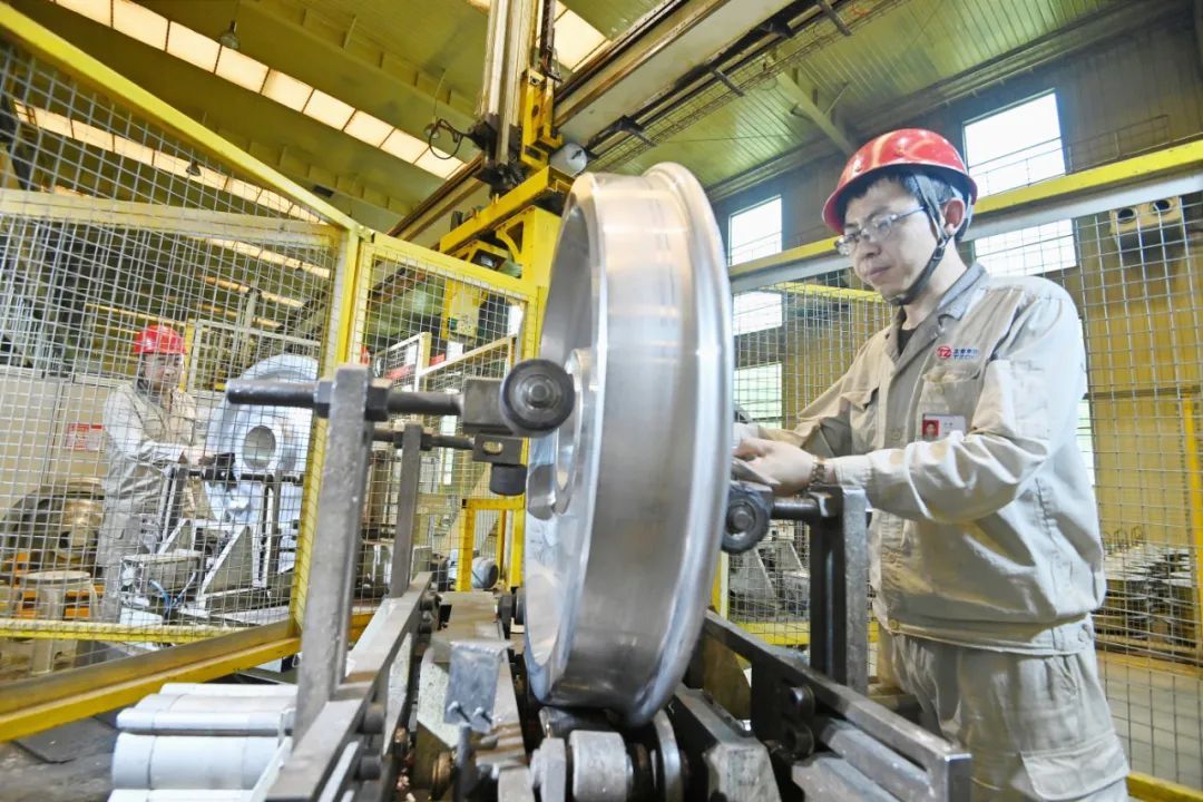 6月14日,走進(jìn)太重軌道公司車輪廠二線生產(chǎn)車間,熱浪襲來,機(jī)器轟鳴,鋸切、加熱、預(yù)成型、壓制、軋制、沖孔、成型……叮當(dāng)鋼鐵碰撞出激昂的旋律,企業(yè)為趕制用戶訂單正加足馬力。太重軌道公司是全球唯一的軌道交通用車輪、車軸、齒輪箱及輪對產(chǎn)品的全譜系全系列全流程研發(fā)制造基地,近期,該企業(yè)持續(xù)技術(shù)創(chuàng)新、對標(biāo)挖潛、降本增效,實現(xiàn)了產(chǎn)品質(zhì)量更優(yōu)、效率更高、成本更低,為全球供應(yīng)著最具競爭力的輪軸產(chǎn)品。