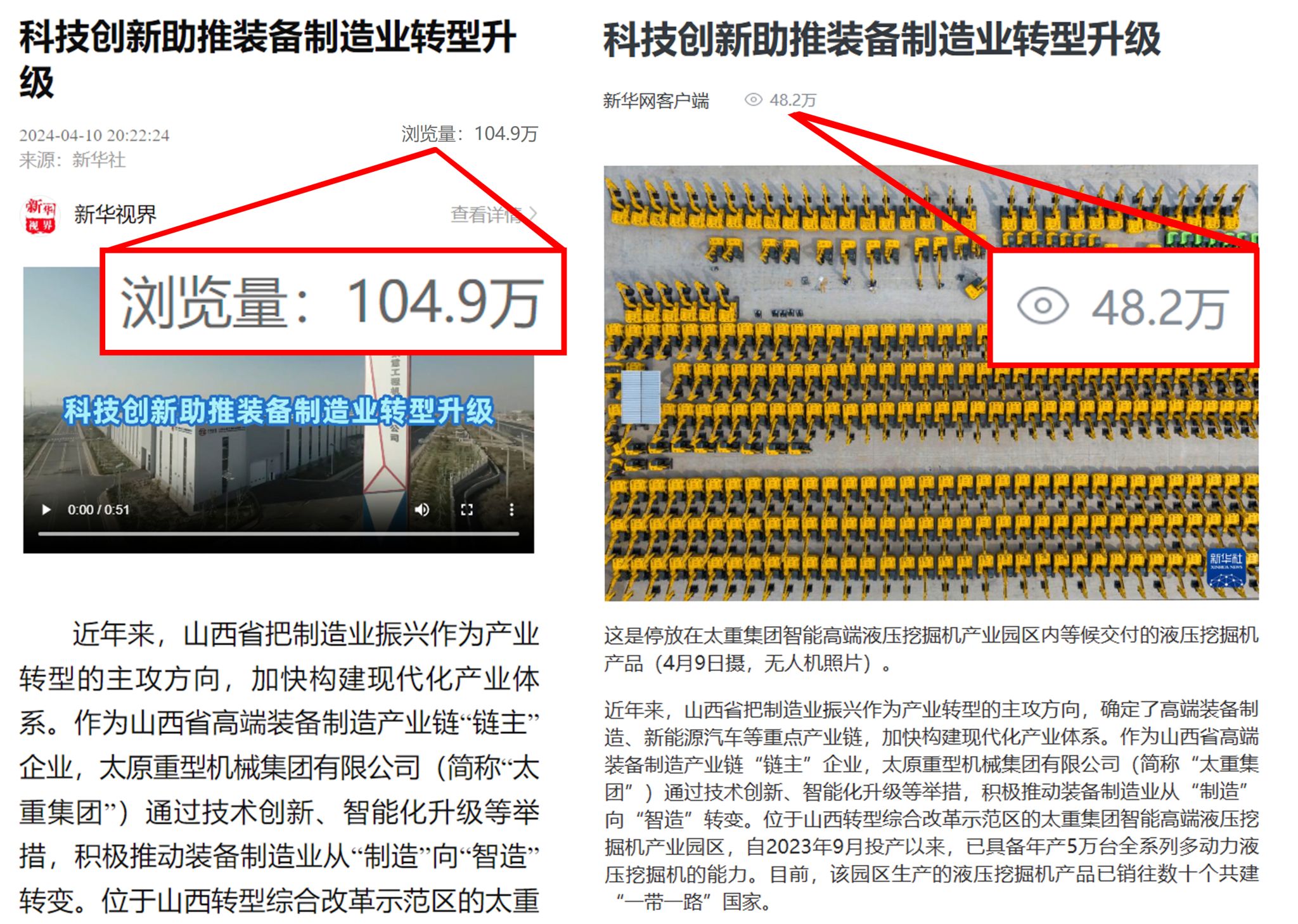 瀏覽量百萬!又是太重液壓挖掘機!近日,新華社重點報刊《新華每日電訊》《經濟參考報》,新華網,工人日報等中央媒體紛紛聚焦太重,這是繼山西日報頭版報道之后的又一波關注熱潮。作為山西省高端裝備制造產業(yè)鏈“鏈主”企業(yè)和高端裝備制造(工程機械)產業(yè)聯盟理事長單位,太重持續(xù)推進信息化、數字化、智能化,全面建設“智慧太重”,勇擔產業(yè)轉型的排頭兵、數字轉型的領頭雁、數實融合的先行者,以數字化轉型帶動產業(yè)的轉型升級,以科技創(chuàng)新持續(xù)推動新質生產力,不斷推出全球首款、全球首創(chuàng)的新能源動力裝備,填補了行業(yè)空白,打造出了具有太重特色的未來工廠。